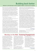 So how does this affect us as churches? What can we do? How do we fit in with this vision? We know we are all children of God and all of value to him, from the smallest child to the most mature person, and I know for some of you it seems as if we are always spending money on children and young people, but I call on you to now rethink that and focus on what you can do to improve the lives of the children in your community. I don't mean just those who come to church, but all children. What role does your church community play in the wider community? What are we as a Christian community doing to show God's love for all children? I'm not going to pretend this will be easy, it will not, or that everyone is equipped to do the work, but we all have gifts we can offer to serve the children, and families, around us. We have buildings that are under used, could they be opened for children's groups? What local charities are supporting families, can you get involved? We know about foodbanks and generally support them but what about other essentials, baby items, school uniform etc, could we be involved in setting up or supporting this, even if it is just to provide a distribution point. But most of all do we know what our community needs? It could be a support group for new parents, a toy library, support for parents of teenagers, or for those with additional needs. It could be a specialised club - for example a Lego club - built around children's interests. The impact these sorts of things have cannot be underestimated, a place to go where you are valued, where someone asks how you are you doing and is genuinely interested in the answer adds much to the lives of children and young people. There are so many opportunities to help, and so much work to be done, let us get on board and help 'Build back better'.